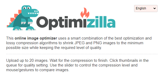 One of the best online image optimizer tools to produce excellent quality image resizing with the smallest file size possible is Optmizilla, which can compress JPG, JPEG and PNG images. This tool comes with a slider feature that you can use you see the before and after versions of your image. You can upload up to 20 images in one go, making it an excellent image optimizer tool for batch processing.